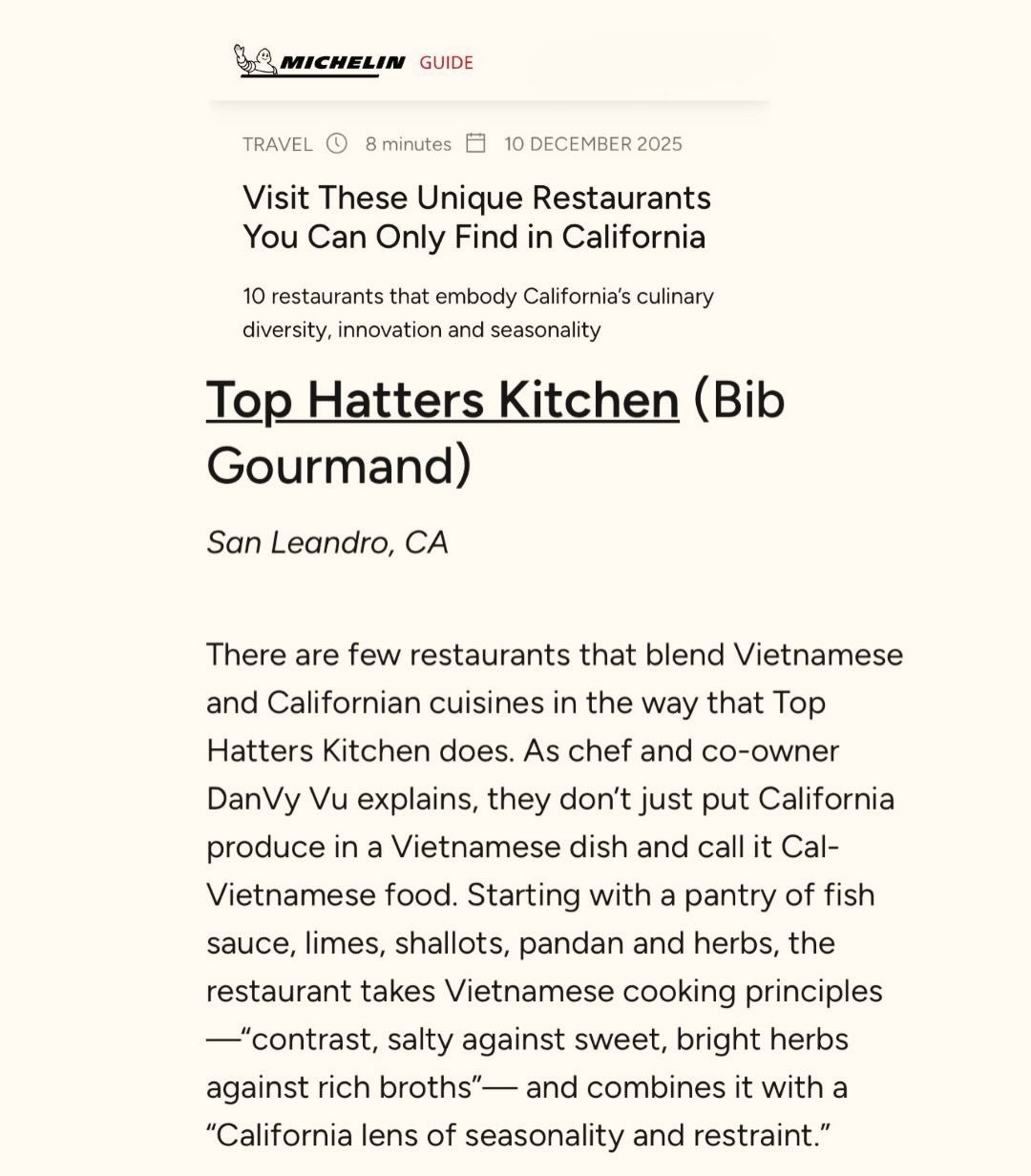 And, and, the 2021, 2022, 2023, and 2024 Michelin Bib Gourmand recognition!